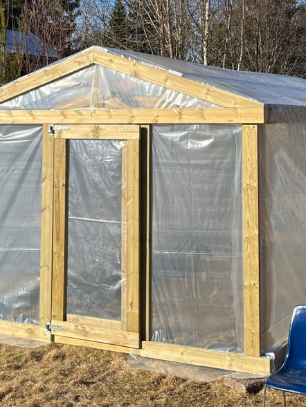 De kas is opgetrokken uit een frame van geïmpregneerd hout en is afgewerkt met een zadeldak. Vanwege de strenge winters in Zweden is er gekozen voor een bekleding met tuinbouwplastic in plaats van glas.